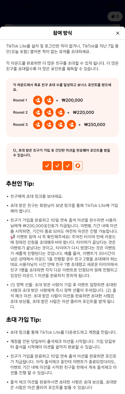 3) 친구가 가입을 완료하고 10일 연속 출석 미션을 완수하면 20만 원 포인트가 지급됩니다.